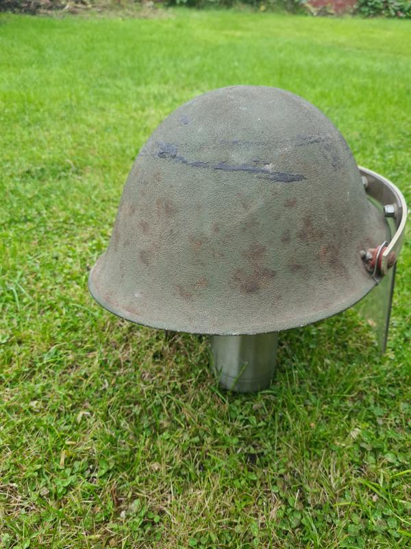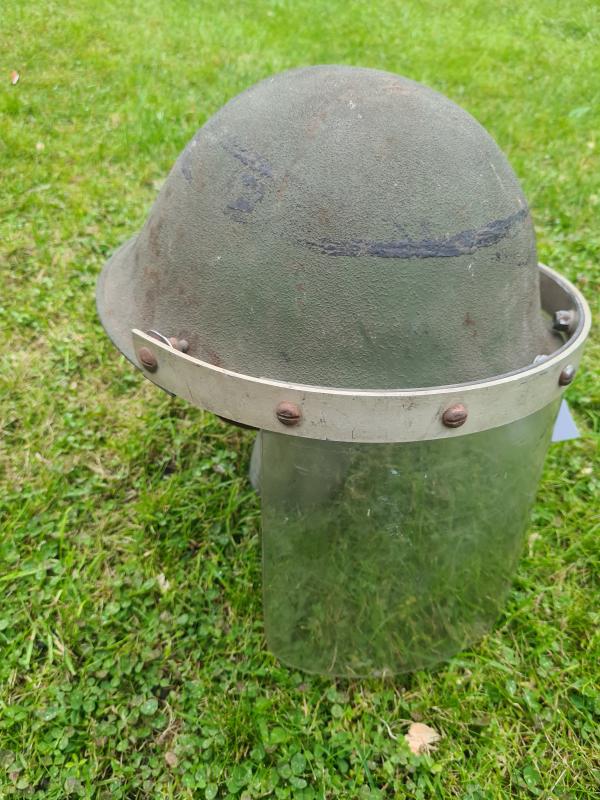 Very nice early type Riot helmet as used right from the start of the Troubles 1969 - the mid 1980s .This has an original newspaper from 1972 inside the liner probably for insulation with a story of two officers captured by the IRA but released. The face shield was made in Northern Ireland in a hurry and was fixed to the first helmets and not removable, so handed over from one unit to the next for twenty years .